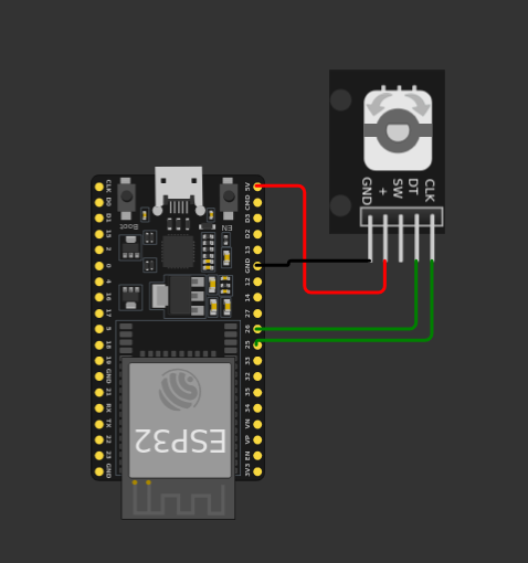 Connect the encoder ground (GND) to the microcontroller, and channels A and B to the digital inputs GPIO 27 and GPIO 19. This connection cannot be made directly as described below.