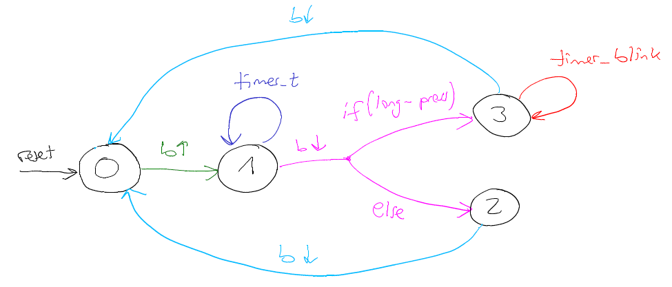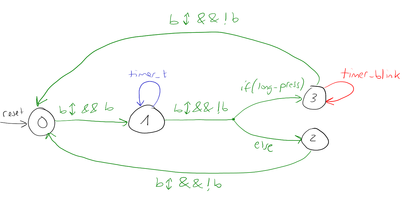 The FSM design is the same as in exercise 7, but the software implementation is different: in this case there is a a prior FSM state evaluation.